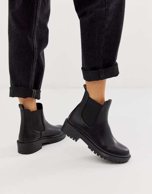 Black Chunky Chelsea Boots Womens