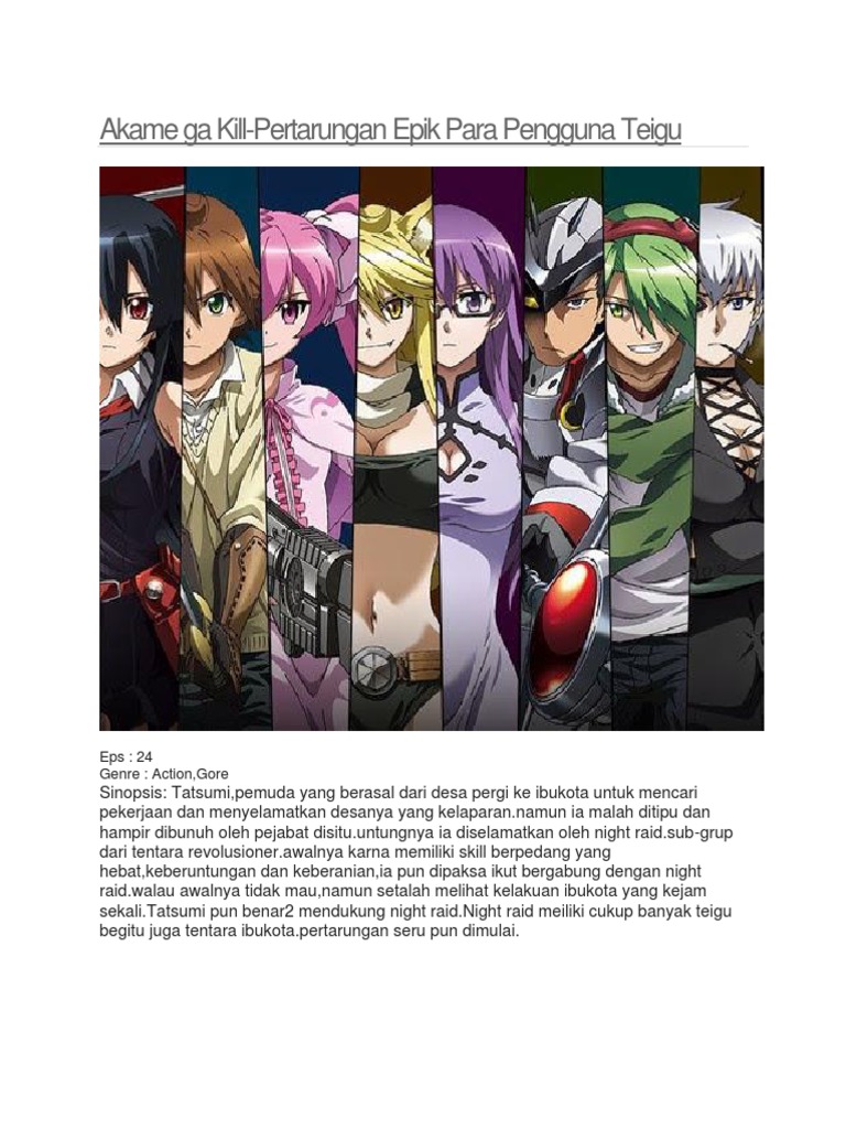 Teigu yang disebut jaegers. Terakhir diubah pada 4 juni 2019 pukul 1856. Tapi mimin tetap tabah dan melanjutkan ngikutin akame ga kill karna story line nya dan karna masih ada pengganti nya yaitu akame v v wtf. Night raid bersama dengan rekrutan baru susanoo seorang humanoid teigu milik najenda dan chelsea melawan jaegers dengan seryu wave dan adik perempuan akame kurome di antara barisannya.