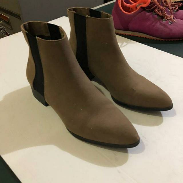 Burgundy Chunky Leather Chelsea Boots From Zara Depop