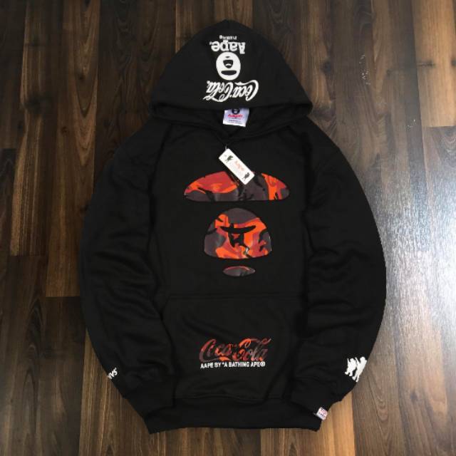 Coca cola x a bathing ape. S m l xl 1 x coca cola full zip hoodie. After a several year break coca cola and bape have reunited for a refreshing new partnership. Fans of this capsule can expect it to drop on july 25 at a bathing ape flagship stores. The bapestas shooting star logo itself a flip on the nike swoosh has been replaced by coca colas iconic wave branding.
