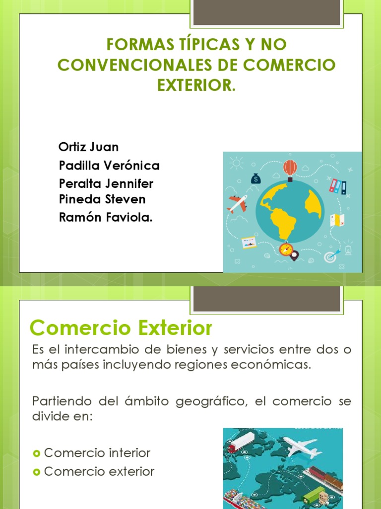 De este modo diferenciamos entre el comercio interior y el exterior. Mientras el concepto de comercio exterior suele utilizarse para mencionar las transacciones de un pais frente al resto del mundo. El comercio exterior se logra promoviendo acuerdos de cooperacion entre paises donde los gobiernos y las empresas de cada pais acuerdan impulsar las relaciones comerciales. El comercio exterior o internacional es el intercambio de bienes y servicios entre paises compras y ventassenalamos 4 rasgos.