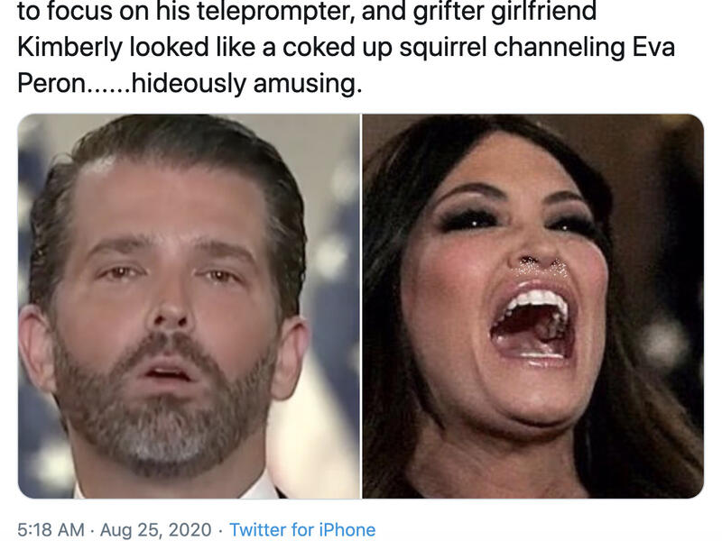 The Sierra Madre Tattler Daily Beast Stephen Colbert Brutally Mocks Donald Trump Jr And Kimberly Guilfoyle S Rnc Speeches