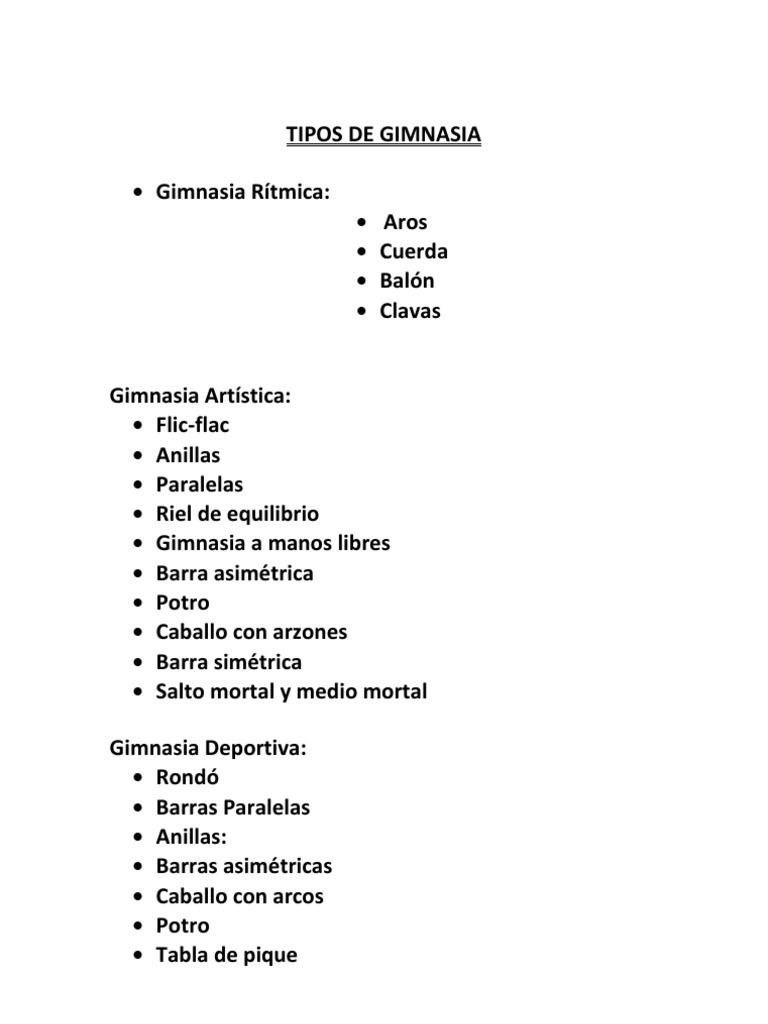 Gimnasia A Manos Libres Tipos