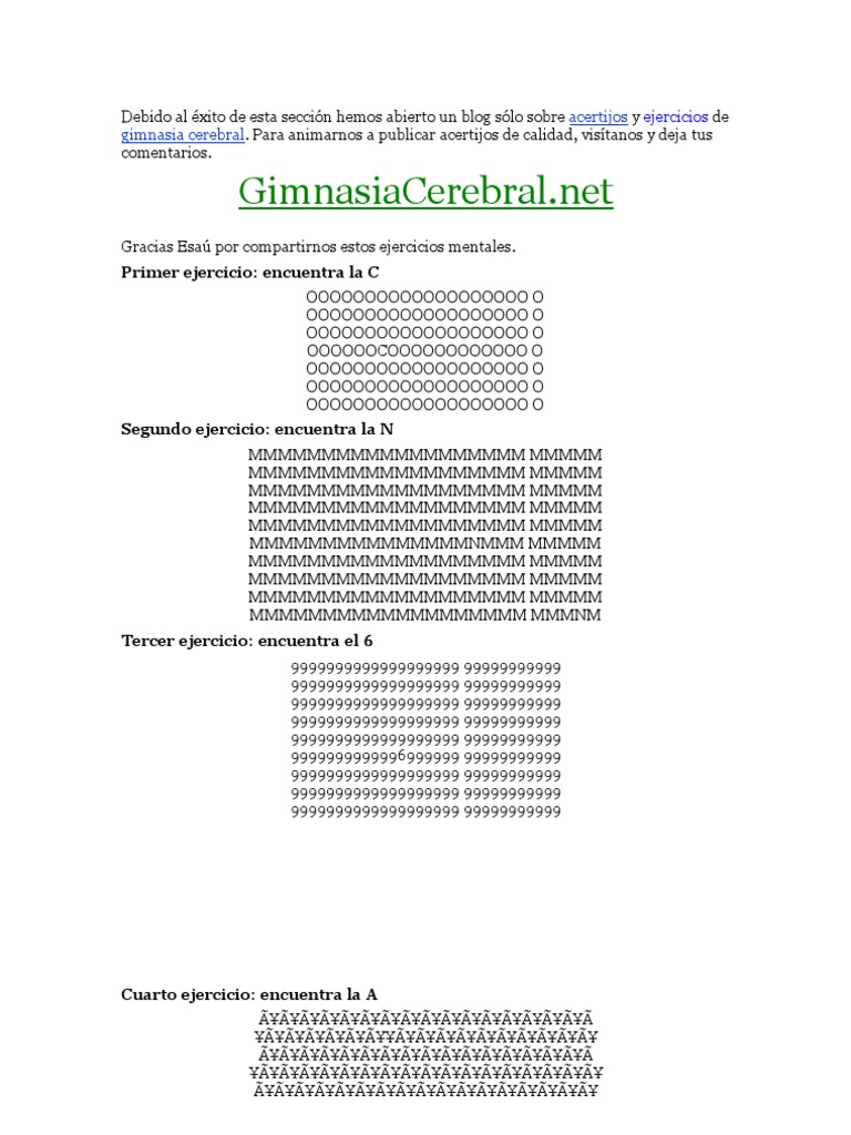 Ejercicios Gimnasia Cerebral Gimnasia Cerebral Gimnasia Cerebral Ejercicios Ejercicio Cerebral