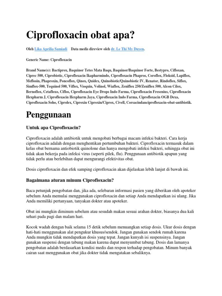 Itulah ulasan tentang ciprofloxacin obat apa.