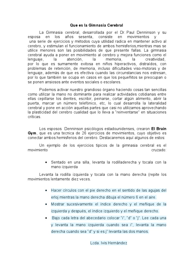 Aprende Sobre La Gimnasia Cerebral En 5 Minutos Pdf Document