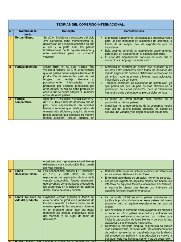3 Principales Teorias Del Comercio Internacional