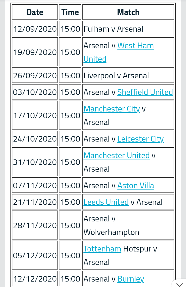 Tottenham Hotspur Fixtures 202021