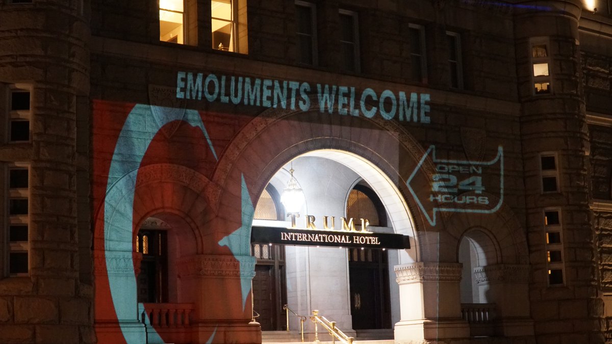 Protesters Project Trump S Ties From Russia To Saudi Arabia Onto His D C Hotel U S Foreign Policy Bought And Sold Here