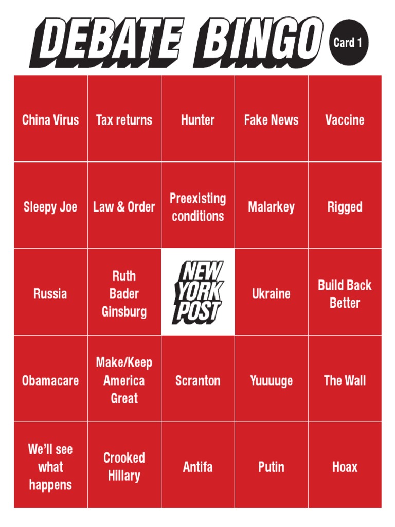 Trump Vs Biden Debate Bingo
